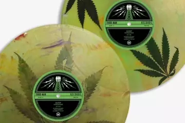 "This beautiful vinyl contains the quintessential representation of Sleep’s plant of choice, the seven-pointed pot leaf embedded in a ‘mosquito-in-amber’ fashion within the LP. Due to the nature of the materials, this version will only be available for purchase in-person at Third Man Records Cass Corridor.”