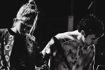 A couple months on, Megan James and Corrin Roddick have just given us the visuals to accompany the track. The surreal video is directed by Renata Kaksha, and begins with Megan’s face enshrouded in darkness, before she tumbles through a cosmic ocean of purple and pink, in a visual echo of the track's lyrics: "A fever billowed with the wind / And I obeyed the sky therein." Dressed in a pink ostrich feathery-like dress, James weaves in and out of her own hair, before light begins to radi