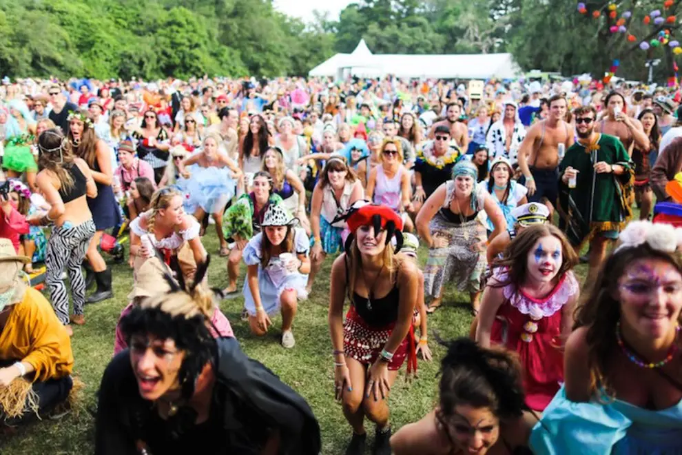 Fancy dress is so great because it immediately puts everyone in the zone to have fun and laugh at themselves. The costumes people make at Secret Garden are incredible. My favourite from last year was the running of the bulls – a group of guys dressed as Spaniards, and were chased and tackled by their mates dressed as bulls. Very good.