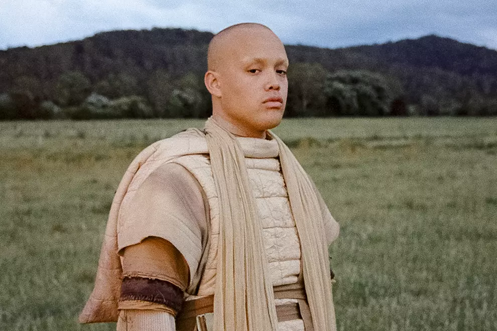 The cinematic visual is a nod to the 2021 sci-fi epic Dune, but evokes, too, the future nostalgia of the 2010s post-apocalyptic YA flicks The Hunger Games and Divergent. "I always liked those series – the way that they seem so otherworldly, but they're actually a reflection of the world we live in now," Luafalealo agrees. "I like that distance and that closeness at the same time."