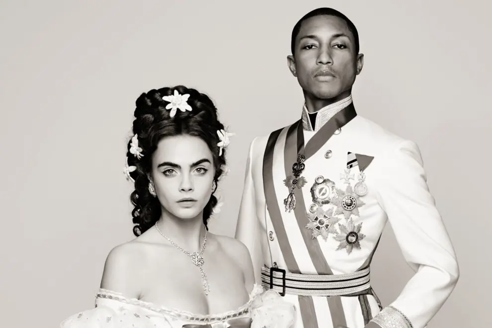 Hear supermodel Cara Delevingne sing with Pharrell Williams in a film for Chanel.. Chanel’s Métiers d’Art collection runway show is a pretty special event each year - a new Chanel ready-to-wear collection is debuted outside of the official Chanel show schedule, and the show always hones in on a city that's somehow linked to Chanel's history. This year it heads to historic Salzburg, and is sure to be a spectacle of epic proportions. Head designer Karl Lagerfeld has premiered a film that will accompany the show - Reincarnation - a musical inspired by the history of an iconic Chanel jacket, starring international catwalk crazy chick Cara Delevingne and multiple Grammy-award winning singer Pharrell Williams, an aspiring fashion mogul himself. Pharrell plays an elevator bell-boy whose wearing the jacket in Austria in 1954, and becomes a muse for Delevingne, who plays Coco Chanel. You can't deny it's a beautifully shot l'il thing, and worth it to hear Delevingne sing for the first time (ap