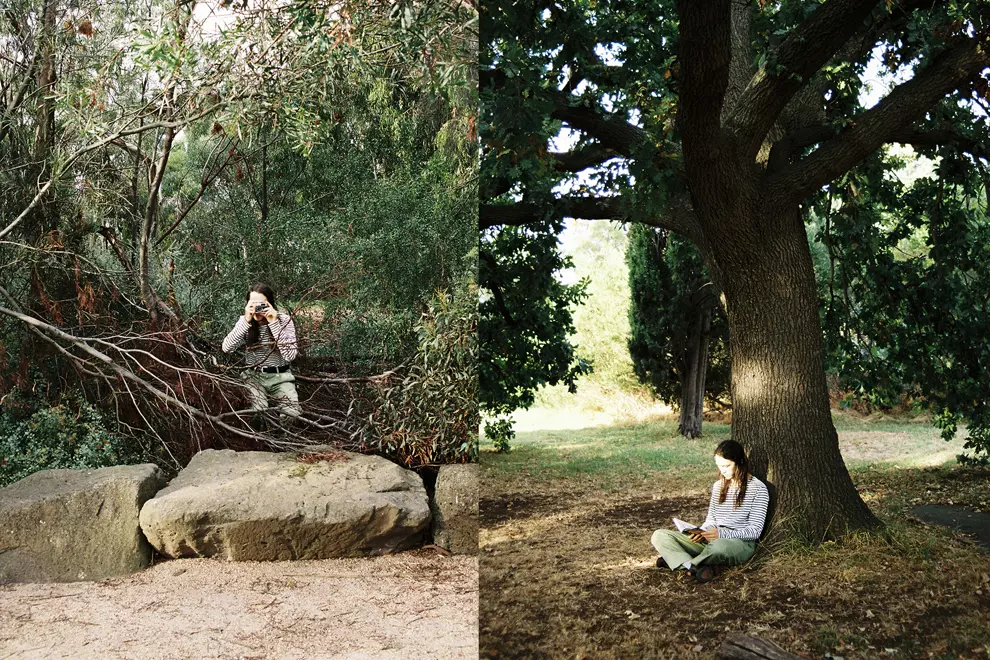 The pair are walking through the White’s Skink habitat at Royal Park – Ruby’s favourite spot for birdwatching near the city. She knows where the frogmouths nest and where to look for pardalotes. She’s also a massive nerd and keeps getting Didirri to take photos of her looking through binoculars. You can’t make this shit up.