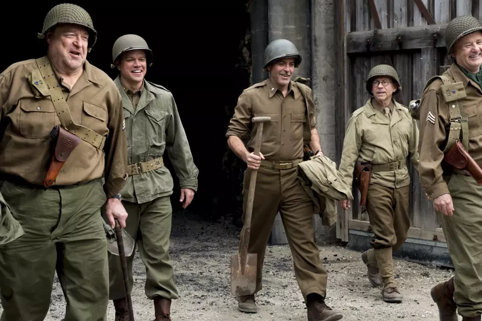 Bumped to the post-Oscars dumping-ground after generating little-to-no Awards buzz, you can see why The Monuments Men didn't find a foothold in a season that sought to make amends for slavery, the treatment of early AIDS victims, and the hubris of journeying into God's final frontier, space. George Clooney's latest directorial effort is a minor caper-comedy, like Ocean's Eleven set to the jaunty tin-whistles and martial drums of military-music irony; Clooney and Matt Damon assembling a Dad's Army of art experts (including Bob Balaban, Bill Murray, John Goodman, and Jean Dujardin) tasked with attempting to save the priceless artworks being destroyed by a fleeing German army at the end of World War II.