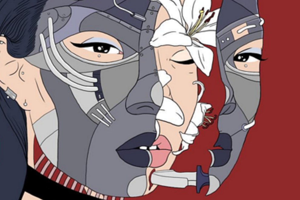 Dan G. Windsor, known online as Cult of Dang, illustrates women in a liminal space between gore and futurism. The pop surrealist stylings imagine her subjects as cyborgs and partially dissected bodies, melting and mirrored in splintered reflections. Fruit, flowers and mechanical limbs all recur as motifs, with themes of science fiction and queerness below the surface. Check out some of her work below.