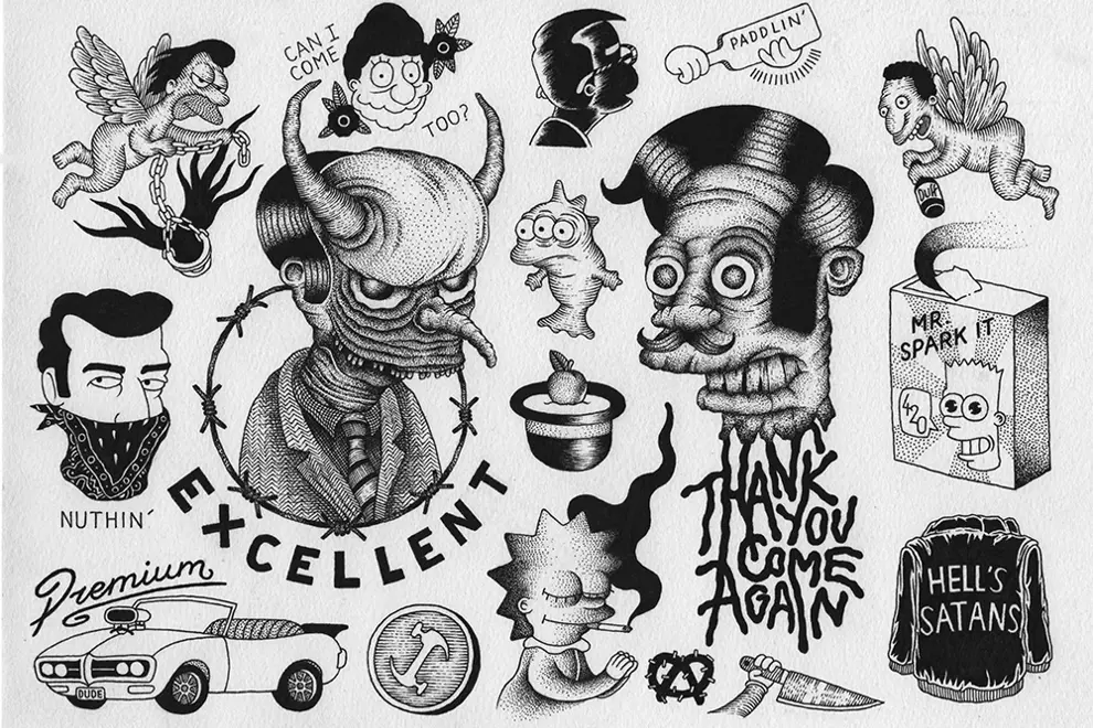 It varies. I always find it difficult to get stuff done when it's such a nice day outside and I'm tempted to go for a skate, or I'm super into a personal drawing and I spend all my time working on that and I leave the jobs until later in the day. On larger projects I like to get some ideas in early so I can ensure the best result.