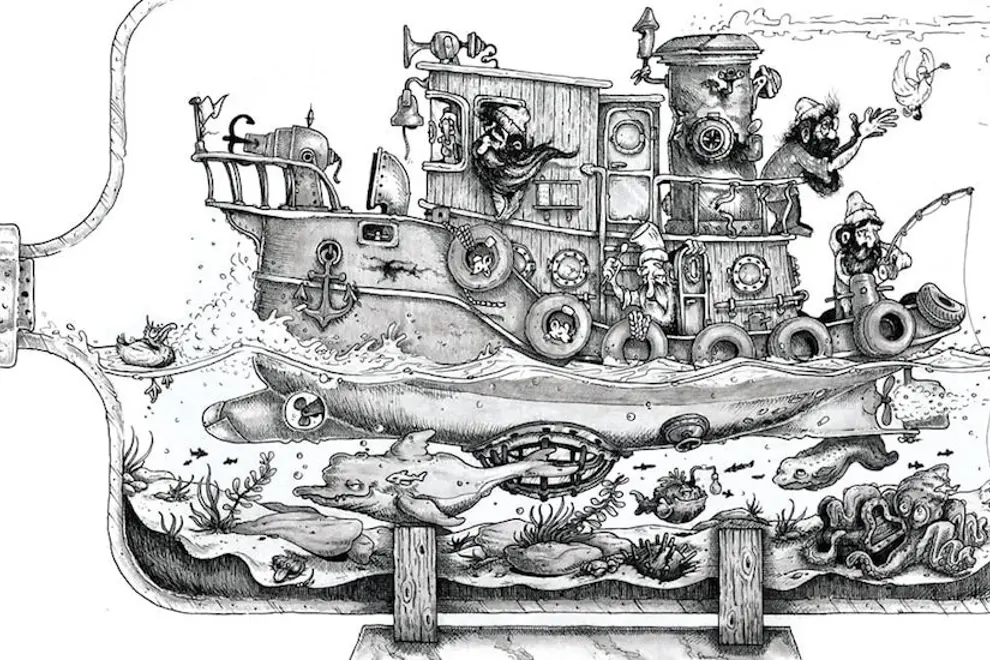 I tend to use the same tools over and over again. I work with a 3H pencil to lay out my composition, then I use Faber Castell ink pens, Fine and Extra Small to do the ink. I almost always work in a moleskin watercolor book, I like to have all my drawings in one place and filling up blackbooks. Adobe illustrator is used for all digital enhancements! Screenprinting, Aerosol and wheat pasting are also some mediums I dabble with.
