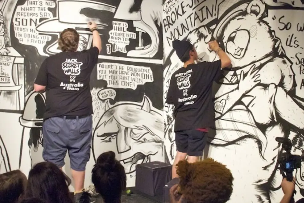 One of those will be the global art collective Secret Walls. Working in a similar way to Fight Club (minus the Tyler Durdens and soap), Secret Walls art battles are set up and promoted through word of mouth and social media, and involve two individual or teams of artists going head to head in an art battle. Rather than us explain it though, we had a chat with one of the brains behind the operation - John Zaheer-Flaherty.