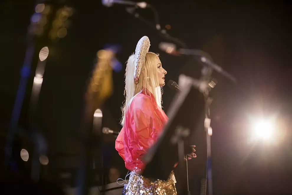 We took the stage at 6pm on New Year's Eve and by that time the audience was completely and utterly wasted - every single person had crazy eyes. After launching into our opening song, a tender story about schoolyard bullying, I noticed a shirtless guy on his mate's shoulders right in front of me. He had 'SUCK ME DRY, KATE!' daubed on his chest in Sharpie. Next to him was a guy with his pants around his ankles doing a wee into other audience members. After a few songs, several people decided it was time to start kicking over all the wheelie bins in sight and throwing rubbish including glass bottles. It was at that point I felt we had performed long enough. We made a quick exit.