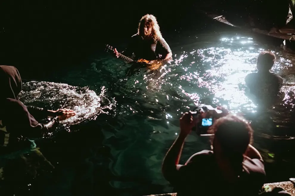 Drums were the first instrument to be filmed. To get the desired effect on the shots there were many methods and many cameras. Each take was shot on two cameras and many lenses. As the song progressed, the instruments would become more immersed in the water by going further into the deep end. The further they were in, the more chaotic the scene would become.