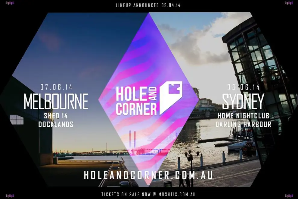 A unique indoor dance event hitting Syd and Melb this June.. HOLEANDCORNER is the combined efforts of touring companies Illusive and Funf, and it's hitting the east side this winter with a line-up that puts the focus on top-quality acts, in an environment that will strive for 'memorable experience' over anything else. Rolling in to Melbourne's Docklands Saturady 7 June and Sydney's Home Nightclub Sunday 8 June (Queen's Birthday Long Weekend), HOLEANDCORNER will be putting a strong emphasis on converting both venues into unrecognisable spaces in an effort to provide punters with something a little out of the ordinary. To compliment this, they've arranged a forward-thinking line-up to get your feet shuffling, whether it be house, techno, wonky electronica or something else, featuring: Hot Chip (DJ Set) Matthew Dear Henry Saiz (Live) Guy J Cosmin TRG Xosar (Live) For more info and to grab yourself a ticket, click the poster below: