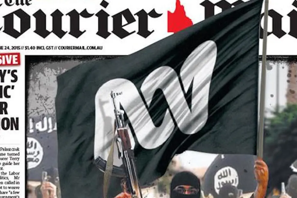 What has followed in the subsequent days since Monday night has more or less been a firestorm of argumentative debate, contradiction and assertion which has spanned the entire Australian media landscape. Things came to somewhat of a head when The Courier Mail, Herald Sun and Daily Telegraph – all three being News Corp papers, if that wasn’t readily obvious – published a front cover of ISIS militants holding black flags with the ABC logo superimposed over them, the headline “IT’S YOUR ABC” in big, white letters over it.