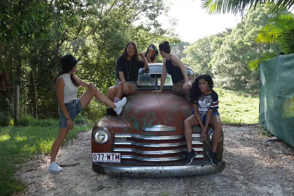 Lewis has many roles ("I'm a lunatic!"). She's a workshop facilitator - passionately fostering Indigenous women's music. Lewis also has a burgeoning solo music career, which saw her participate in the 2016 Red Bull Music Academy (RBMA) in Montreal. She has DJed for TZU MC Joelistics. And then she's a member of Haiku Hands, along with the Sydney-based Claire Nakazawa and Mataya Young. Nakazawa's sister, Mie, is involved as a visual artist. "Joelistics had to do a thing at triple j, Beat The Drum - they had a 40th anniversary. Joel got up with You Am I. He needed four backing singers to get up. He got Claire to gather four women - so they got up in front of 50,000 people... Joel was like, 'This vibe is awesome,' - the world needs super-vibing, bangin' female groups. So he just started mentoring all of us and got us all together."