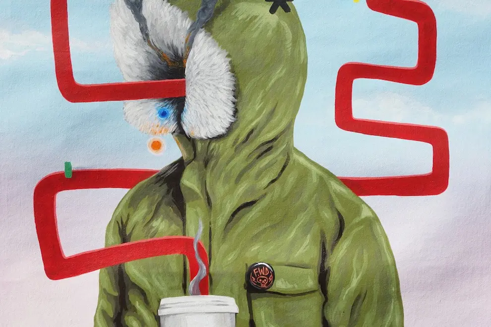 No words really needed with this one, Famous When Dead from England really has a cool style. Incorporating the old - brush stokes with the relatively new – spray paint. His take on the theme of coffee is swiftly explained like a blunt instrument to the head: When one over doses in too much caffeine. Urgh, we’ve all been there and I highly recommend one barista style coffee coffee per day... Play it safe kids.