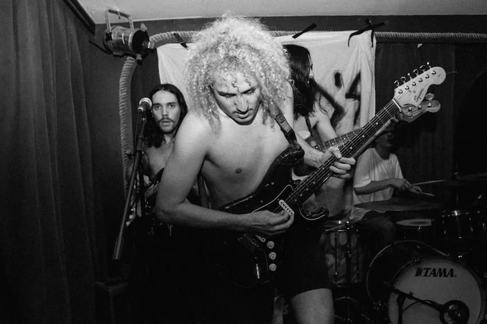 With a bunch of shows already under their sweaty belts, including supporting the likes of Gooch Palms and Bleeding Knees Club and hitting stages at King Street Crawl and Splendour In The Grass, Pleasure Coma today arrive with their manic debut single, Waiting. Comprising of "four upstanding young Centrelink beneficiaries who hail from all parts of NSW", the band has a 3-track EP called Naked in the bank, recorded entirely inside lead singer/guitarist Tasker's Redfern sharehouse. And that very sharehouse features in the scuzzy video clip you're about to see for Waiting, a video that Tasker says is "an obscure attempt to represent the track's lyrics of being fed bullshit from the music industry, which in the long run, gets you nowhere. All the vomiting filmed in the deleted scenes was also a testament to the fact that humans should stay clear of milk."