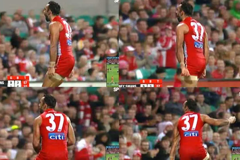 You’d think we would have made some kind of progress since 1993, when Nicky Winmar famously lifted his geurnsey to point at his skin during a match against Collingwood. Throughout the ‘90s, Winmar was a constant target of vicious insults during his professional career, most notably from the aforementioned fountain of decency Brereton and Sam Newman, who infamously appeared on The Footy Show in blackface when Winmar cancelled an appearance to appear on a rival network’s program. And whilst Newman is altogether seen as a caricature of footy larrikinism in Australia, it’s disconcerting to see how acceptable such practices of clear racial insult still are in Australian Rules football.