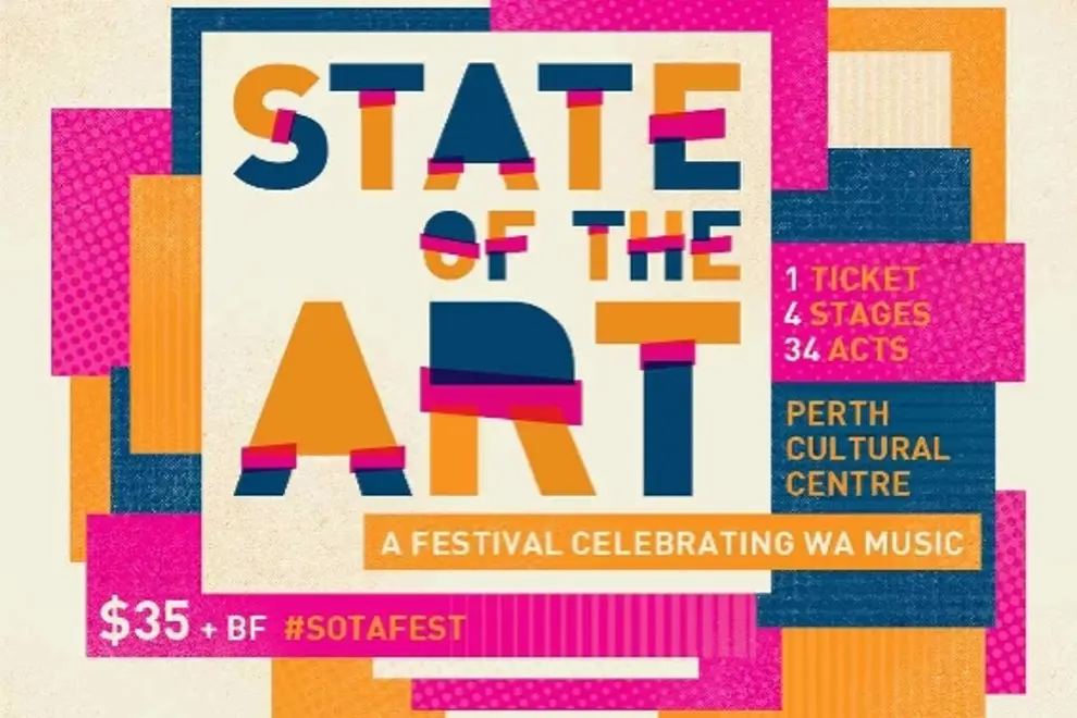 1 ticket. 34 acts. 4 stages. A Festival celebrating WA music!. Whilst being a pretty isolated city, Perth is definitley not lacking in the musical department, and this year's State Of The Art Festival is testament to that, with 34 acts taking over four stages across the Perth Cultural Centre, Saturday 31 May. Not only that, it's for the measly price of $35+BF; a little over one dollar per band. Which when we think about it seems kinda ridiculous. The line-up casts a wide net over a broad spectrum of homegrown talent, and seen as it's an all-ages event with drinking areas, there's something for everyone: Drapht, San Cisco, Optamus, Sable, Split Seconds, Bitter Belief, Gunns, Axe Girl, Eskimo Joe, Felicity Groom, Mathas, Kučka, Slumberjack, Gina Williams & Guy Ghouse, Simone & Girlfunkle, Indigo, The Stems, The Blackeyed Susans, Kim Salmon, The Kill Devil Hills, The Floors, Ruby Boots, Pat Chow and Kevin Parker (Tame Impala) DJ set, with a fourth stage TBA. We are of course proud as punc