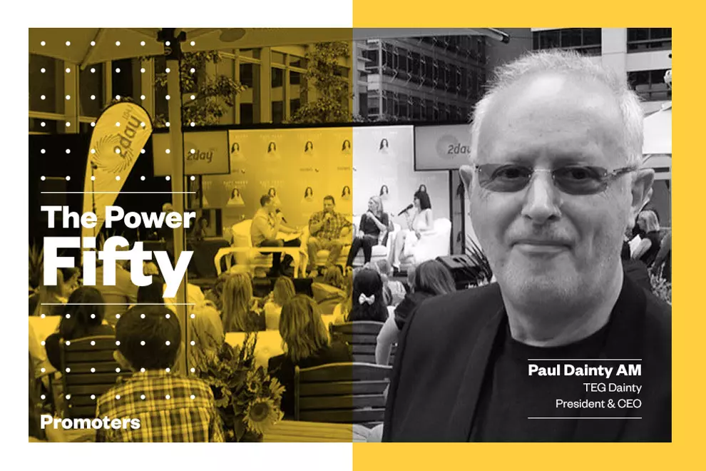 Paul Dainty’s first job out of school was working as a runner for film directors like Joseph Losey and Stanley Kubrick at the UK’s Shepperton Studios. He was offered a trainee director course with the BBC but took a job offer from a music agency instead, which saw him work with acts like Roy Orbison. During tours to Australia with Orbison, Dainty spotted an opportunity for touring Down Under and started The Paul Dainty Corporation which went on to work with acts like ABBA, The Rolling Stones, Diana Ross and Bee Gees early on. The company was acquired by the TEG Group in 2016.