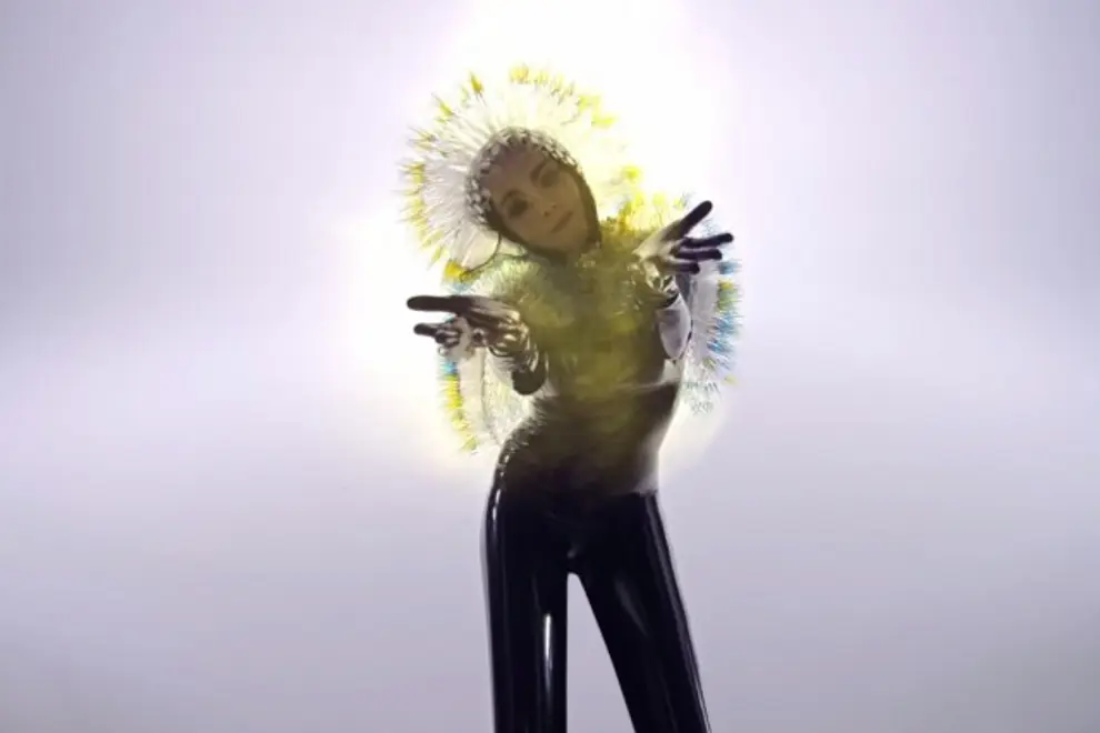 Meh, I still want to see it; especially the one-off 3D video installation Black Lake, that was commissioned by MoMA for the show, that we wrote about a little while ago. In the absence of plane tickets to New York however, we will have to settle for the first music video, Lionsong, for the Icelandic artist's new album Vulnicura. Directed by longtime collaborators Inez and Vinoodh, it features Björk in the colourful dandelion-essque headress of the album's cover, dancing in her sensual-methodical manner, interspersed with clips of her beating, black-veined heart. According to the YouTube description, visual effects were used to create the stars and lights surrounding the singer and to extend her legs to unnatural proportions. She looks like some kind of shiny ninja spider.