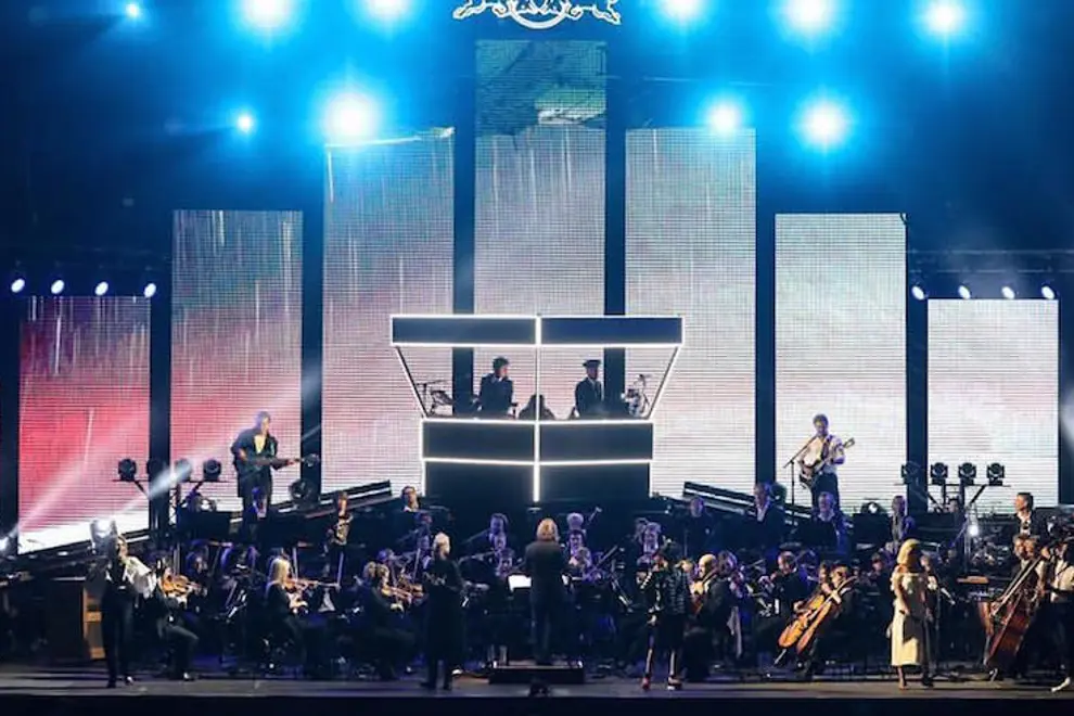 Last weekend saw Flight Facilities play what will surely go down as one of their biggest shows in history as part of Red Bull Music Academy Weekender in Sydney. Following on from last year's extra special live performance with the Melbourne Symphony Orchestra, last Saturday Flight Facilities played an enormous show with the Sydney Symphony Orchestra. While it featured all the bells and whistles from the previous performance - it's their music backed a orchestra for goodness sake, this go round they actually got legendary pop singer John Paul Young to join them on stage for a special version of Love Is In The Air.