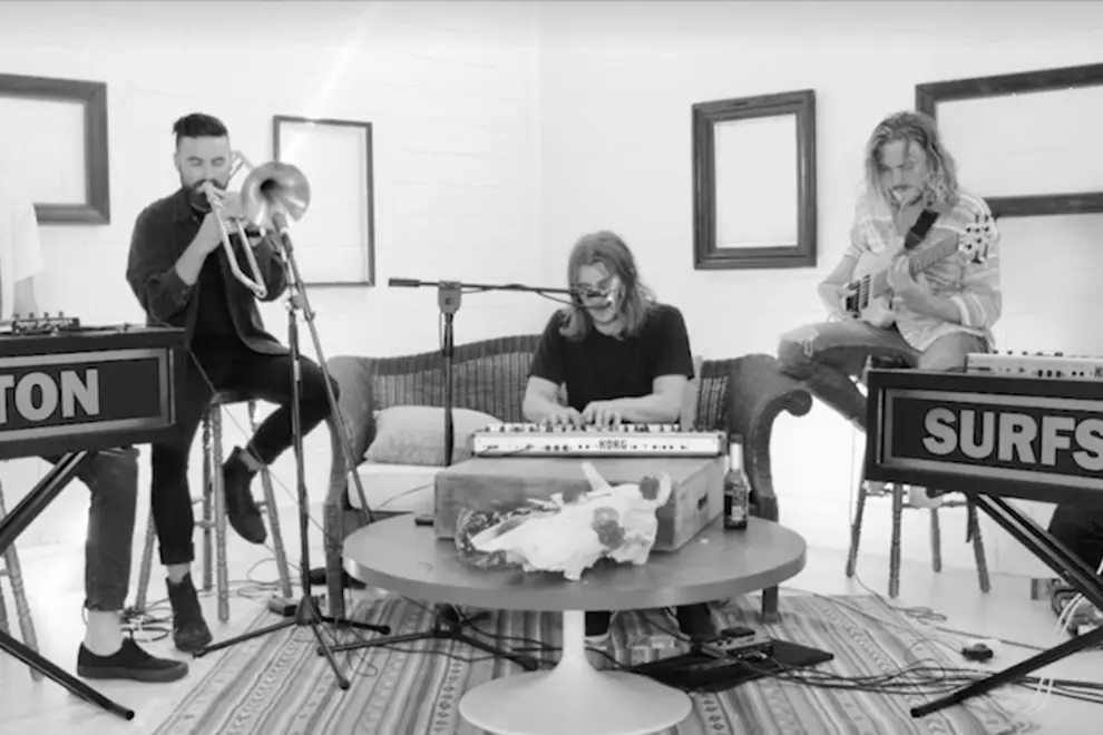 Manly-based electronic outfit Winston Surfshirt has had a dream past two months. Their debut single Be About You copped some serious acclaim early on, they signed to homegrown heroes Sweat It Out, the Wave Racer-repping management company Astral People and US booking agency CCA, scored plays on triple j and Beats 1 (the latter courtesy of Sir Elton John, too) and also sold out their hometown launch and inaugral gig - all in their first few months of releasing music under the alias. Not content with this just yet, they've just announced a run of nation-wide shows (including their first in Western Australia), announced a support slot for none other than re-uniting legendary Australian group Midnight Oil, scored a slot at Splendour In The Grass and also released a really impressive live video, covering J Dilla's So Far To Go. Filmed in a band member's living room, Winston Surfshirt's live cover of So Far To Go matches the moody, jazzy vibes of the original, with soft synth chords and simplistic percussion floating behind murmuring vocal work, sung originally by Common and D'Angelo. The live cover acts well to drum up a touch of hype ahead of their forthcoming run of shows, which kick off at Melbourne's Northcote Social Club on June 2nd (full dates below).