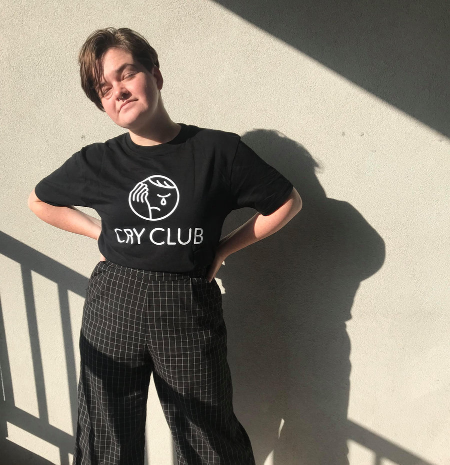 They’re out of 'Don’t fucking touch me' Ts! Gutted. 'Teary logo' shirt is a strong consolation though, and I always love a band who's down to model their own gear.