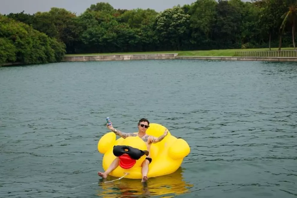 This year, Armstrong got ahead of the joke, posting a photo of himself floating on a giant inflatable duck in Singapore to Instagram on the morning of October 1st. Armstrong captioned the image "GOOD MORNING. YOU’RE WELCOME".