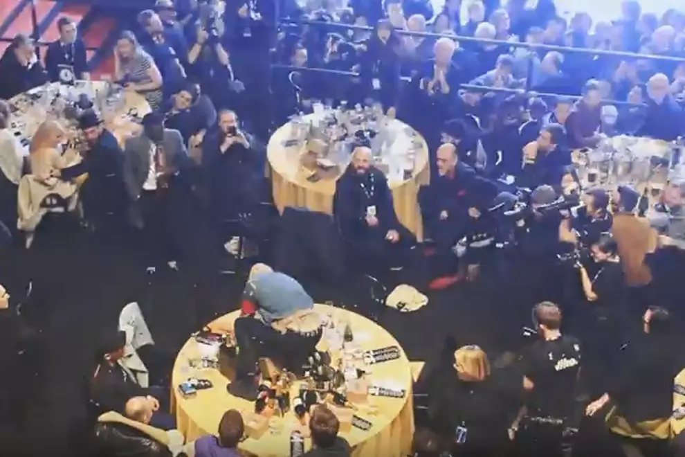 After taking out the gong for NME Innovation Award at the ceremony held in Austin, Texas, BMTH later returned on stage to perform their track Happy Song, which saw Sykes venture out into the crowd, before he jumped on to Coldplay's table while singing and kicking glasses and bottles around him.