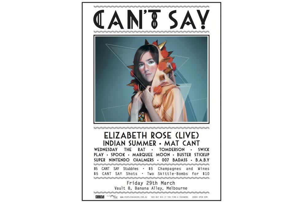 Head to our Melbourne club CANT SAY on Friday, 29th March as Elizabeth Rose is playing, supported by Indian Summer, Mat Cant and our resident DJs!
