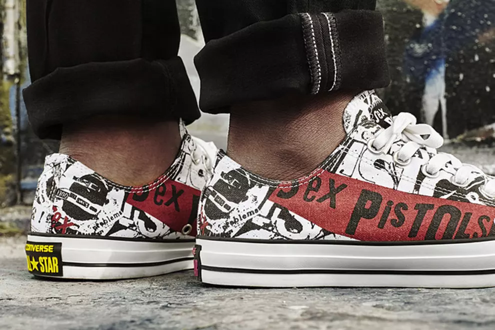 Sex PistolsThe quintessential shoe for basketballers (historically, at least), rockers and grunge kids, Converse has unveiled a line of Sex Pistols-themed Chuck Taylor All Star sneakers, set for release as part of their Spring 2016 range.