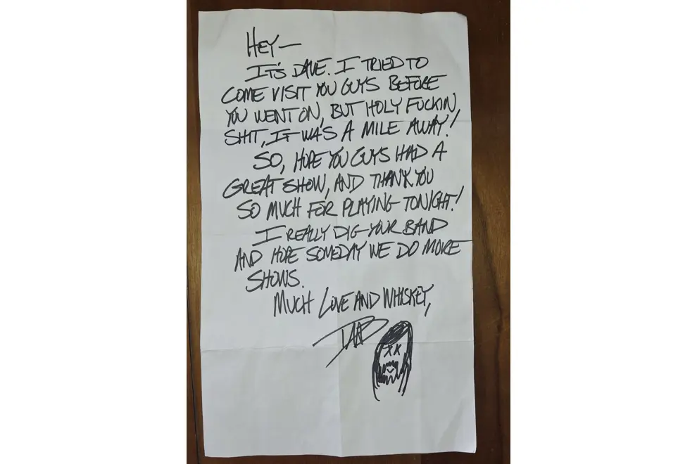 Spooky Eyes Letter From Dave Grohl. Courtesy of Spooky Eyes