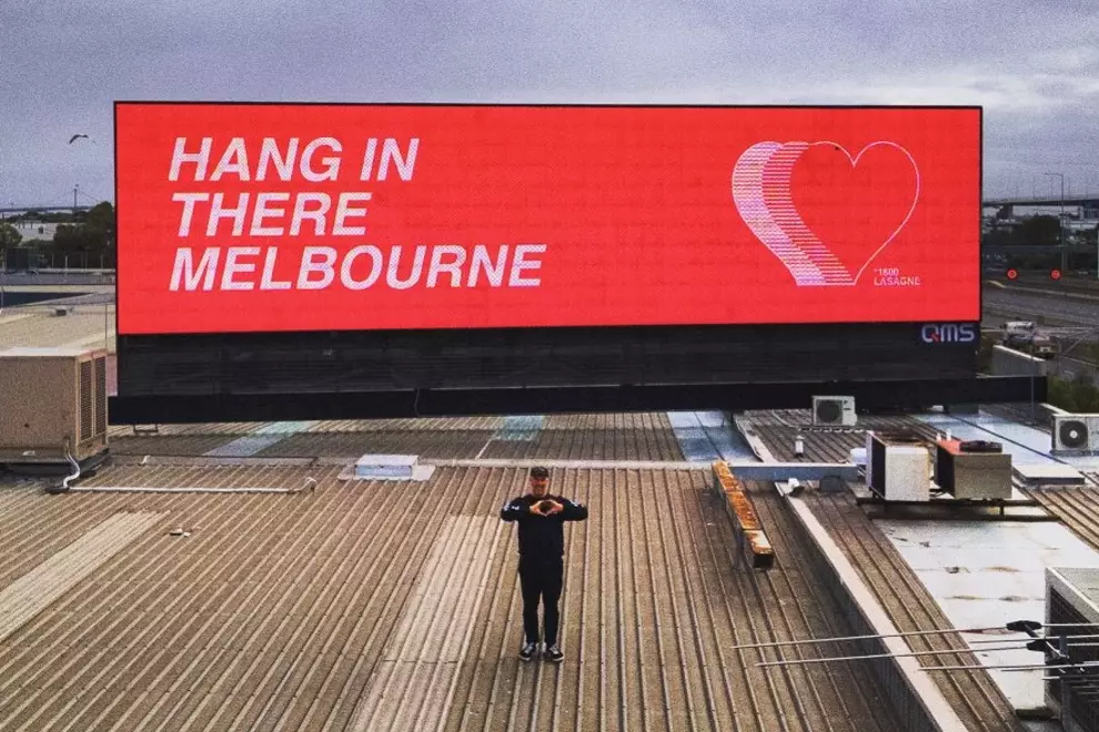 Joey Kellock - a festival organiser and owner of local restaurant hotspot 1800 Lasagne - has taken his grassroots campaign from a single online post to plastering the message of "Hang In There, Melbourne" across the city.