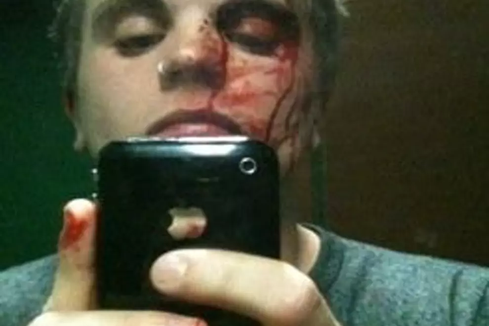 The singer--I think his name is Dave [Gallegos]--suckerpunched Johnny and broke his nose. At that point, I grabbed [Gallegos] around the neck and brought him to the ground in a chokehold. Next thing I know, I was getting kicked in the head and blacked out for a couple seconds. When I came to, I was covered in blood and still getting kicked. I managed to get up and realized they had Johnny up against a door. It was about six-on-one and they weren’t stopping. As people saw what was happening—including everyone who works at the Smiling Moose—they started to come split it up. [Brokencyde] even hit Johnny's sister, Desiree, in the chest when she tried splitting it up. Once Brokencyde realized they were the ones everyone was against at this point, they jumped back on their bus, hit a parked car and fled the scene.