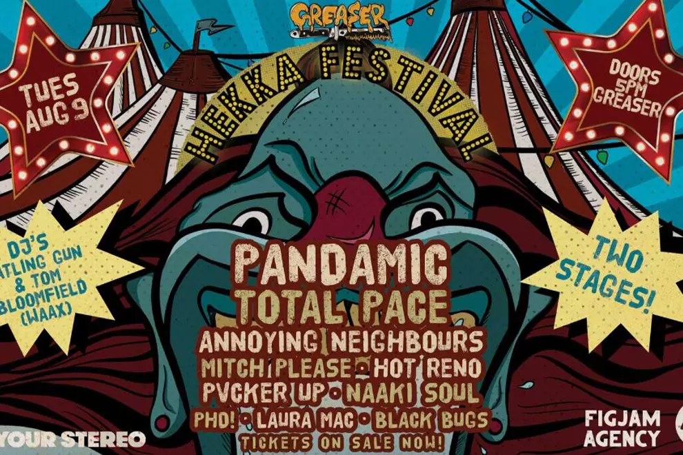 Across two very loud nights and two stages, Hekka Festival will put the spotlight on Brisbane's burgeoning underground, with Annoying Neighbours, Mitch Please, Hot Reno, Pvcker Up Naaki Soul, PHD!, Laura Mac, and Black Bugs joining Pandamic and Total Pace for what promises to be a hekkin' great time.