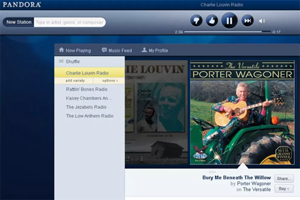 Unlike other streaming services, Pandora creates a radio playlist based around a starting point that the user provides. For example, selecting The Jezabels throws you their track NobodyNowhere, followed by Ingrid Michaelson'sThis Is War and Wye Oak's Plains. Users can then skip or approve tracks to further customise the playlist.