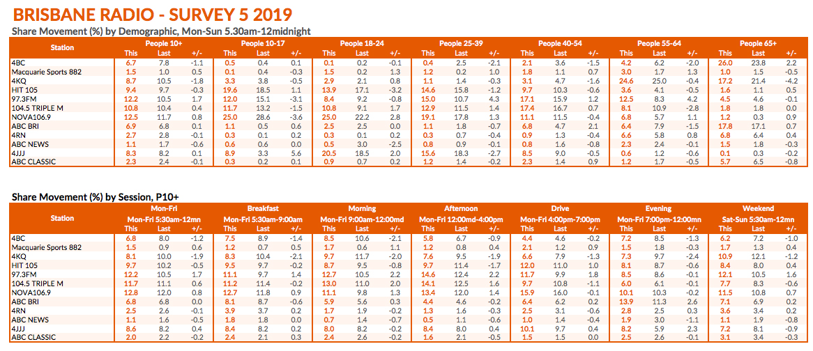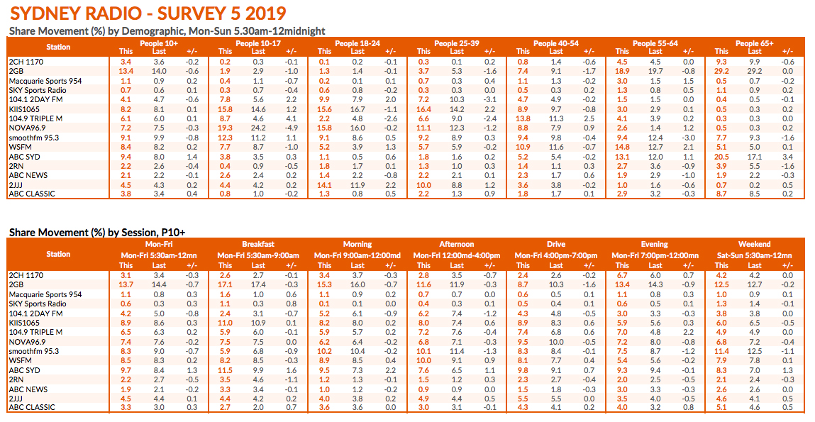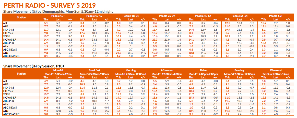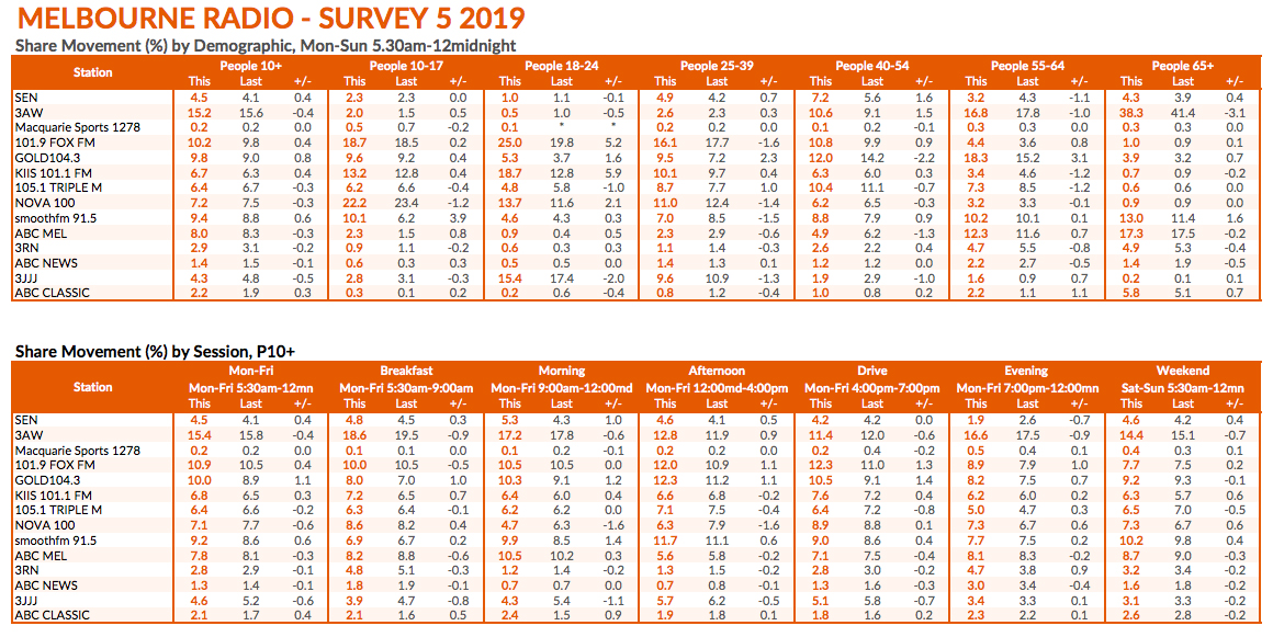 Things are certainly hot in radio right now and today sees the release of the the fifth round of ratings for 2019. Check out the metro figures below and click on the images for a larger version. See the July 2019 ratings here.