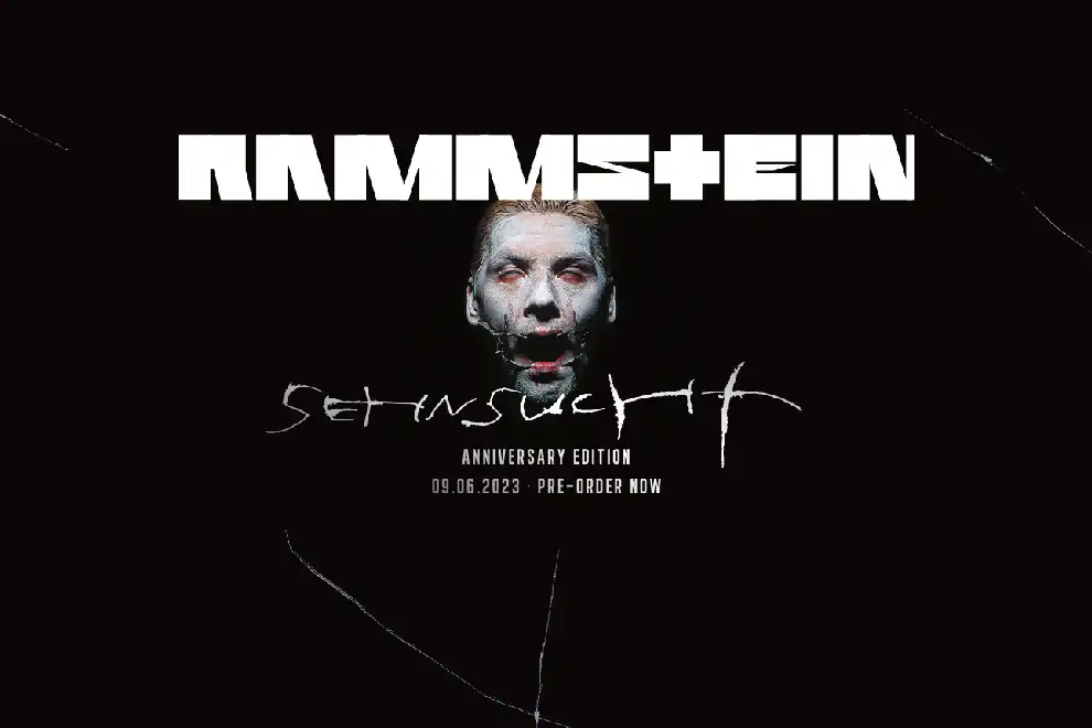 A band statement reads, “Rammstein's iconic 1997 studio album featuring Du Hast and Engel is back on June 9, 2023, as the "Sehnsucht Anniversary Edition"!