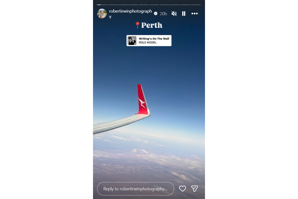 Before the big moment, the Australian wildlife conservation and television host teased his appearance, taking to Instagram Stories from a plane on the way to Perth, blasting a Role Model song.