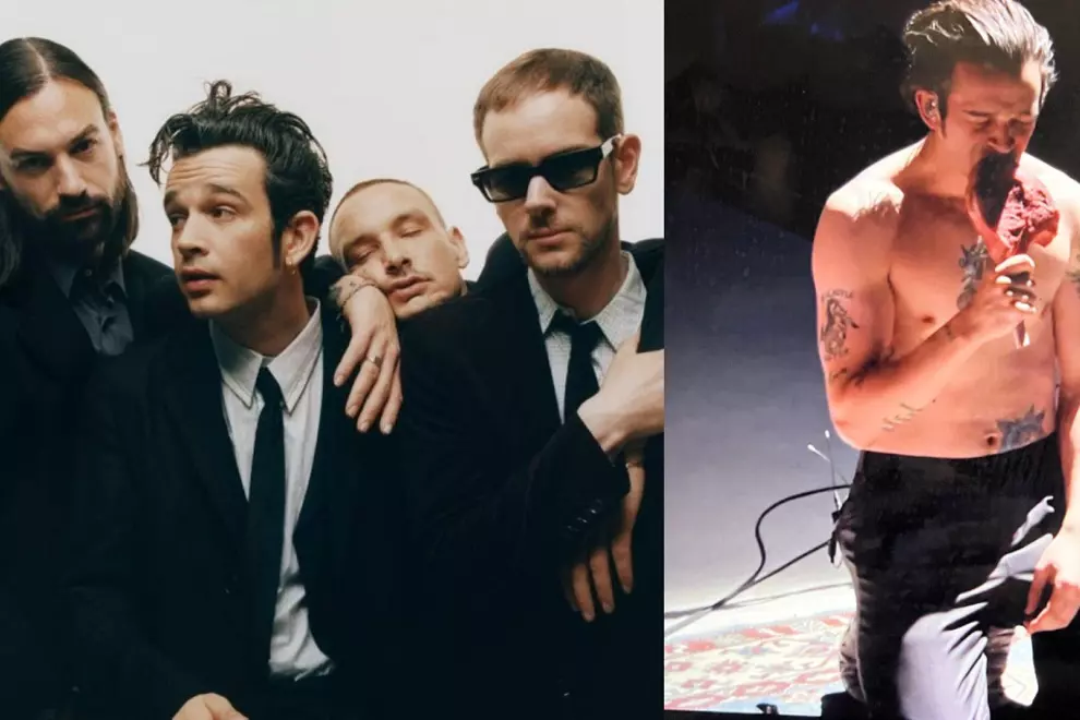 The 1975Okay, this is bizarre. Matty Healy, the vocalist for The 1975, ate a chunk of raw Tomahawk steak meat on the Madison Square Garden stage last night.