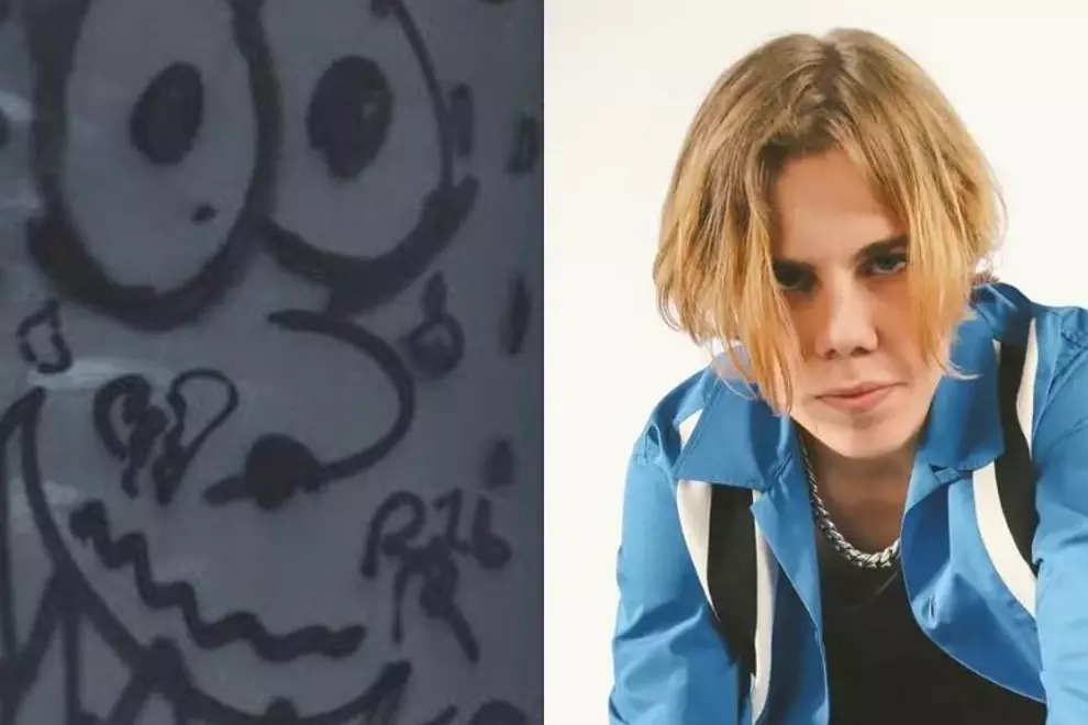 The work itself depicts a smiley face with a definite Spongebob Squarepants influence, and a big 'LAROI' artist tag.