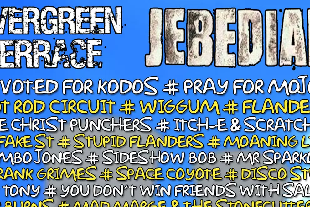 So the obvious question becomes: can we assemble a festival made from bands who’ve taken their names from The Simpsons? Did Moses start forest fires? You bet your bottom dollar, we can even split ‘em into loose stages so you can peruse by genre…
