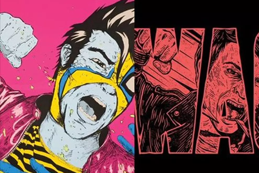 "When it came time to sort the WACO artwork we decided to work with another great illustrator Pedro Oyarbide whose style we also love and who knew the direction we wanted – the letters WACO in Red on a Black background, with an illustration of a guy throwing a punch inside the letters."