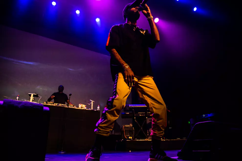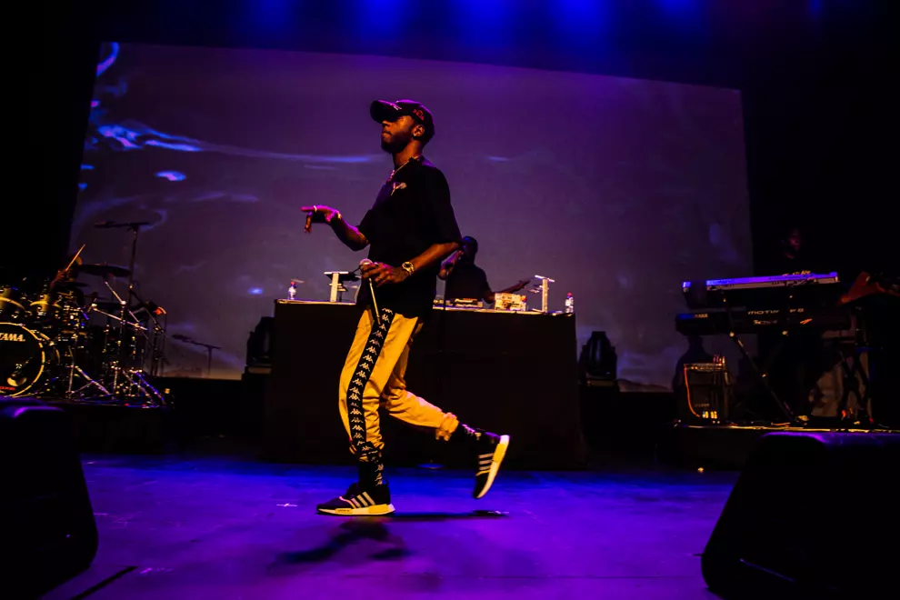 The use of real drums and percussion throughout the night sets Valentine's performance apart from other hip hop acts while also highlighting his obvious love of real instrumentation.