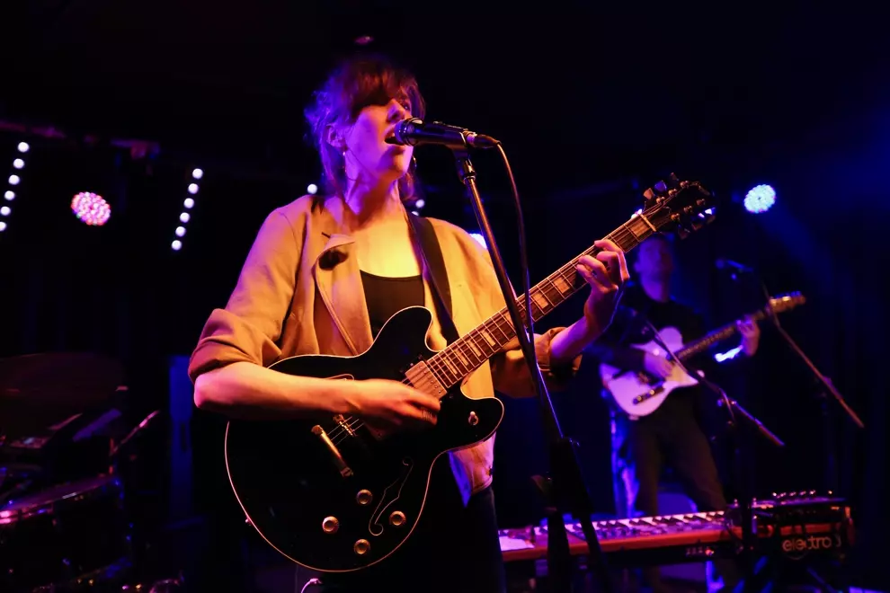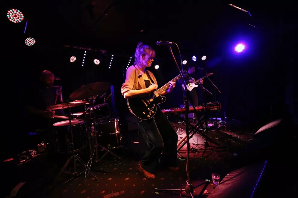 Arriving on stage with drummer Arron Light (Husky) and guitarist/collaborator Lawrence Folvig, Ainslie Wills kicked straight into showcasing her newest release, with the driving Running Second and early highlight Society pulling all in attendance into a trance.