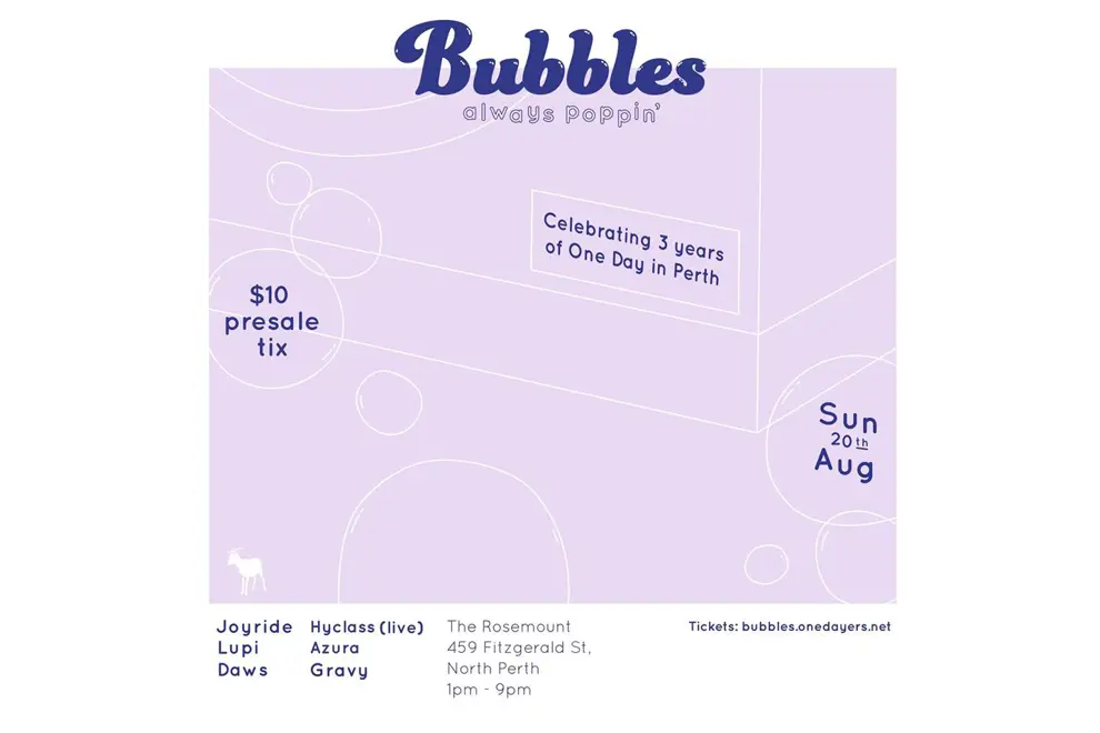 Sunday August 20 will see one helluva Sunday session going down at the Rosemount Hotel as the One Day Crew celebrate three years of bringing hungover Mondays back to Perth. In recent times the event has a new name (Bubbles), but the same feel good Sunday vibes, and to mark the occasion head honcho Nick Lupi had a dig through the photo archives to showcase a few of their fave snaps/people, with some stories to go with.