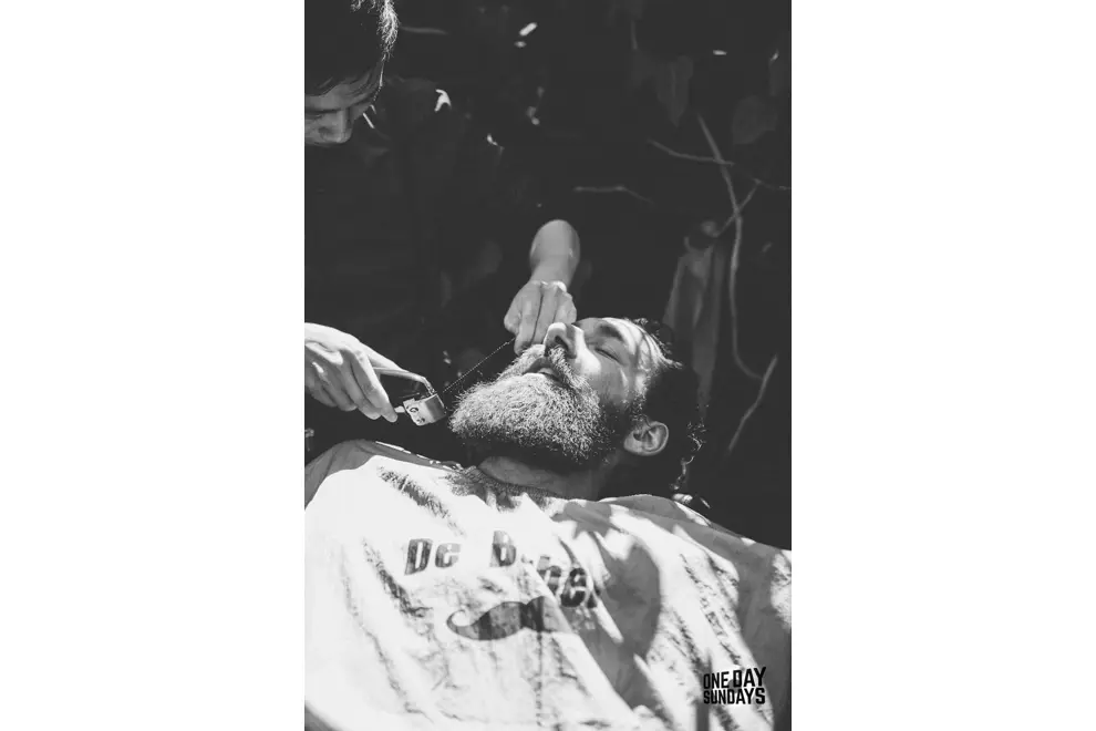 At various points over the past few years, One Day Sundays has featured barbers, hair and make up artists, food stalls, basketball courts, grass, sand, graffiti artists….you name it. Pictured here is Perth DJ/personality/style icon Aslan getting his beard trimmed.