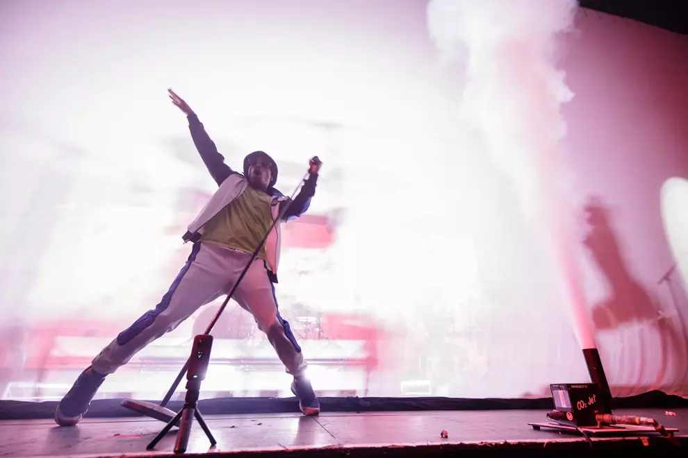 Immediately, weed smoke sweeps through the venue and Who R U, off last year’s Oxnard album, cuts through the speakers like a platinum-pressed diamond cutter; it’s time to stunt. Queuing up chaotic pre-album single Bubblin, .Paak courageously opens up a mosh pit at the crowd’s centre as the strings sequence into the beat and pandemonium ensues. Bubbles slide up the projected background screen, punters mosh, a drum solo segues into the Kaytranada collab Glowed Up, which somehow slams harder. The R&B star crowd surfs and by the run's end, this crowd is frenetic. “Is everyone still alive?” .Paak quips from side of stage... we answer, just barely.