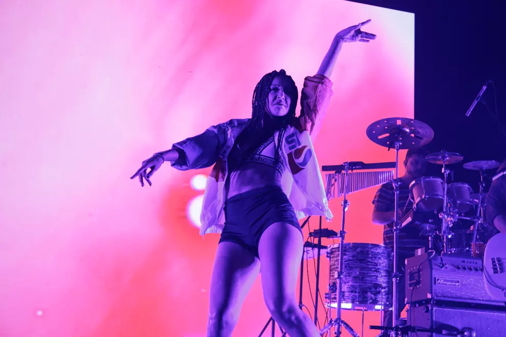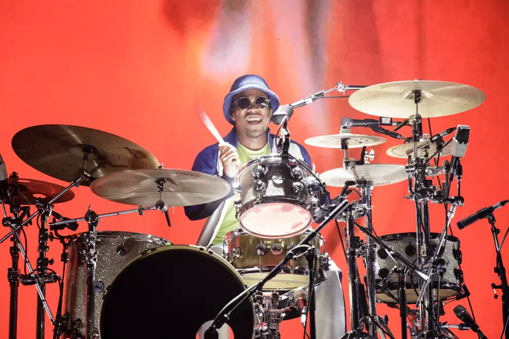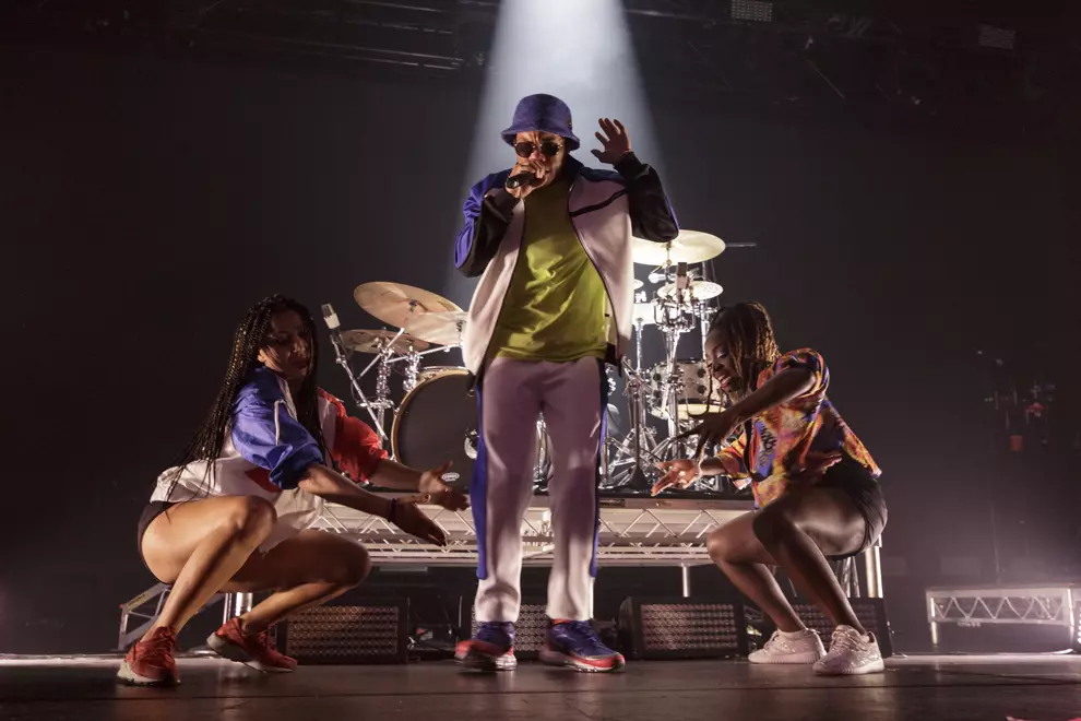 .Paak is obviously a talented drummer, having come up through session musician joints, producing and playing around Oxnard and Ventura in California, but it’s when he takes the mic and moves that punters respond most. His supporting band The Free Nationals have got to be one of the tightest working bands out right now, staying innovative and in the pocket. .Paak’s back-up dancers share loose choreography and even sing brilliantly at times. The band member introduction is a cute choice, each player's name brought up on the backing screen with their own basketball card and colour. Visually, the set is rich and vibrant with amber oranges and deep reds dominating the stage and projections.