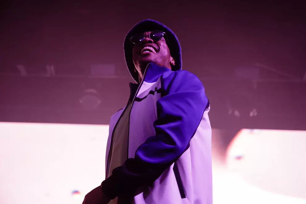 Over the grime, sweat and worn leather seats of Melbourne’s old premier boxing ring, Festival Hall, there’s a certain expectation for adrenaline to pump around this venue. Anderson .Paak & The Free Nationals are the perfect touring juggernaut to bring it tonight. Rising from darkness to a gold-flecked sun, .Paak opens the show the way he finishes it – furiously drumming.
