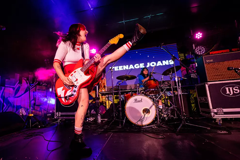 It’s always hard to believe Adelaide-based Teenage Joans are just two people rather than a full band. Their set at The Warehouse Loft can be heard from the street below; it’s as loud and raucous as ever. Once up the stairs, the full force of the duo is on display. Guitarist/vocalist Cahli Blakers rips around the stage with an impressive energy, alternating between huge jumps and guitar hero solos. Drummer/vocalist Tahlia Borg holds it all together from the back of the stage with some tight drumwork. Last year’s release Wine and debut single Three Leaf Clover are highlights, with the crowd singing along heartily throughout. Rock’s future is in good hands with Teenage Joans.