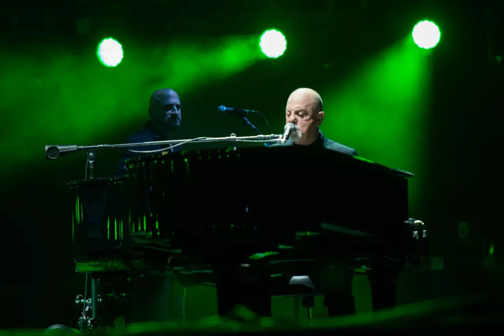 After My Life, Joel is settled at the piano, and being brutally honest with the crowd, he confesses that he has not released any new material since 1993. "So you are just going to have to listen to the same old shit," he says to a delighted crowd who are more than ready to immerse themselves in a greatest hits show. Many musicians over the years have told us that they really only get better with time. In Joel’s case, his voice is as commanding as ever. This matched with the confident gloss of tight musicianship pumped crystal clear through a massive sound system. Age has not diminished his capacity to deliver a red-hot live show. Being one of the great piano players of pop music, Joel really does tickle the ivories. He also owes plenty to the band of highly skilled players that support him. Tonight is less about searing guitar solos, and the arrangements feature plenty of wistful sax and wild horn solos. Although best filed under rock and pop, Joel's songs are imbued with plenty of soul and folk influences.
